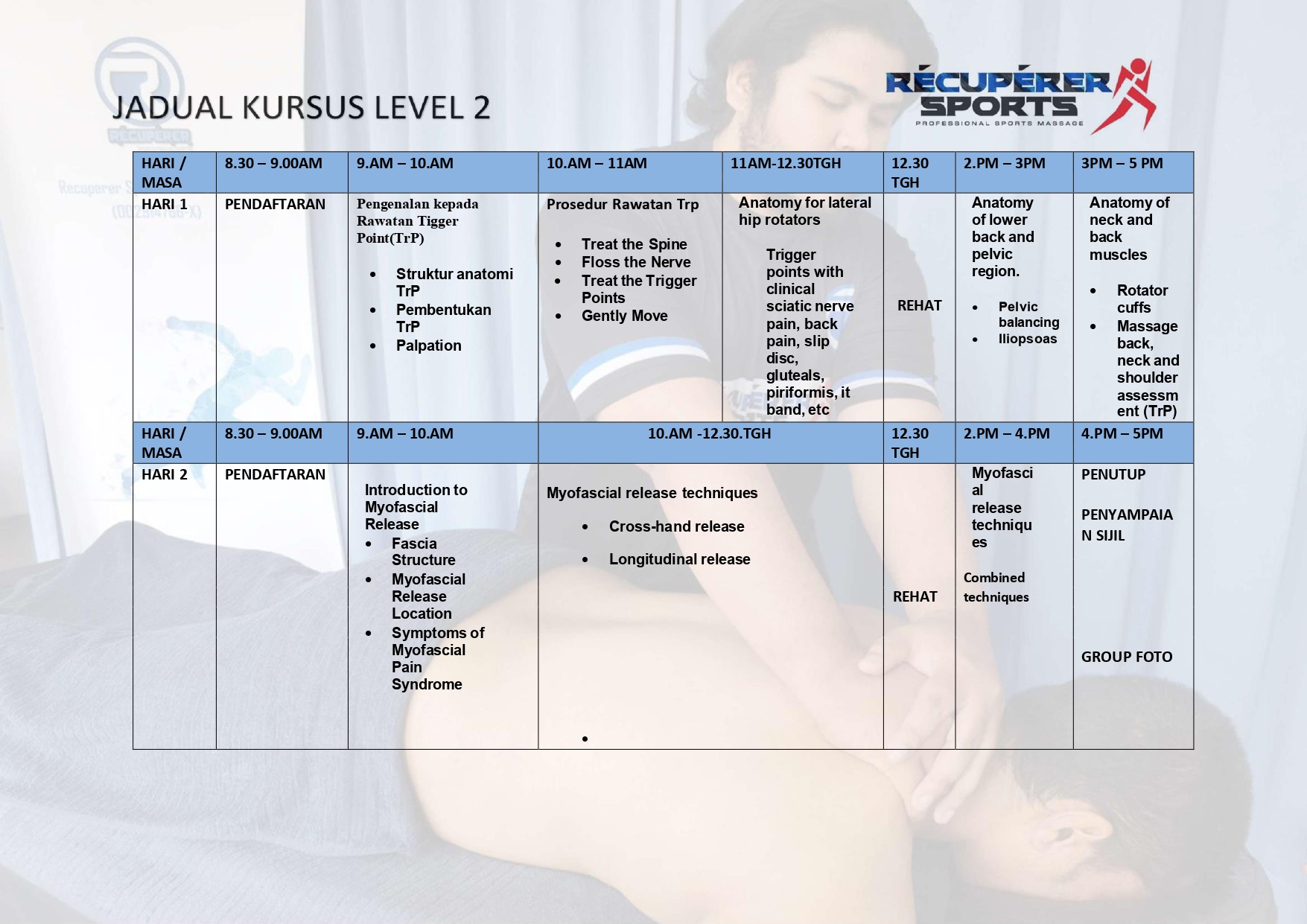 Kursus Urutan Sukan Tahap 2 ini dibimbing oleh seorang pensyarah dari Institut Kemahiran Sukan Negara, individu yang telah menghabiskan bertahun-tahun menguasai dan mengajar teknik urutan sukan di peringkat profesional. Dengan rekod pengalaman yang luas, kepakaran beliau bukan sahaja diiktiraf dalam industri, malah telah melahirkan ramai juruterapi sukan yang berjaya. Inilah peluang untuk anda belajar terus daripada pakar sebenar dalam bidang urutan sukan.”